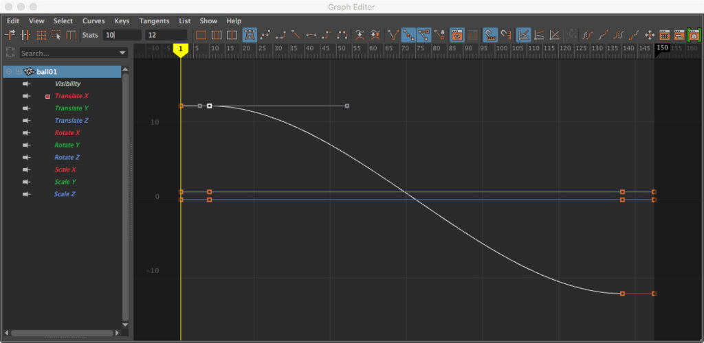 • Clean up errant keys on all but the Translate Y graph in the Graph Editor.