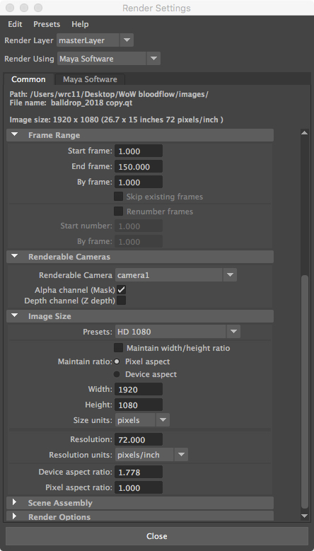 • In Render Settings Preferences, set up with a Preset of HD 1080.