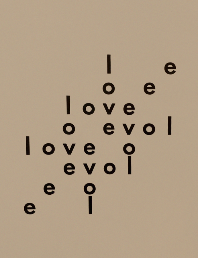 The term concrete poetry develops a distinction between concrete and abstract image-making through words. The term abstract refers to ideas or concepts that have no physical referents. Say a poet wants to write about love. She can’t hold this in her hand or describe its form: it’s an abstraction. But when she generates a visual poem, through wordplay, typography, figure-ground relationships, and other phenomena, she gives form to this idea of love. This form-making makes the abstract idea available to the senses: it makes it concrete.