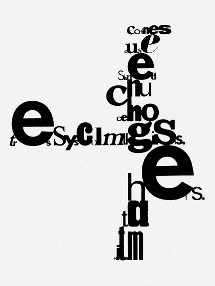 • Musician John Cage applies his famous chance and scripting operations to language — you could call a dozen font-family instances to create a similar visual effect.