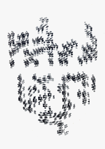 So there’s always a relationship between text and image in a concrete poem. We might say the same thing about every website that combines image-based and text-based content. We can draw a fairly densely connected set of dots between concrete poetry and like-kind forms, such as micrography and the calligram.