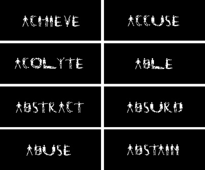 Some artists must resort to the very invention of a typeface to bring their work to bear.  James Johnson developed one of the early masterworks of interactive web-based art in his work A Thousand Words using a font he created from contorted skeletons posing to form letters. The spectator clicks on the letters to create a new, random set, with associations conjured by the viewer’s own history.