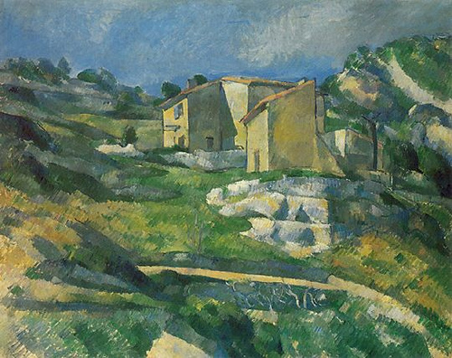 Paul Cezanne, Houses in Provence, 1883… an analogous color scheme centered on green, with yellows and cyans