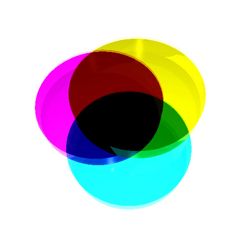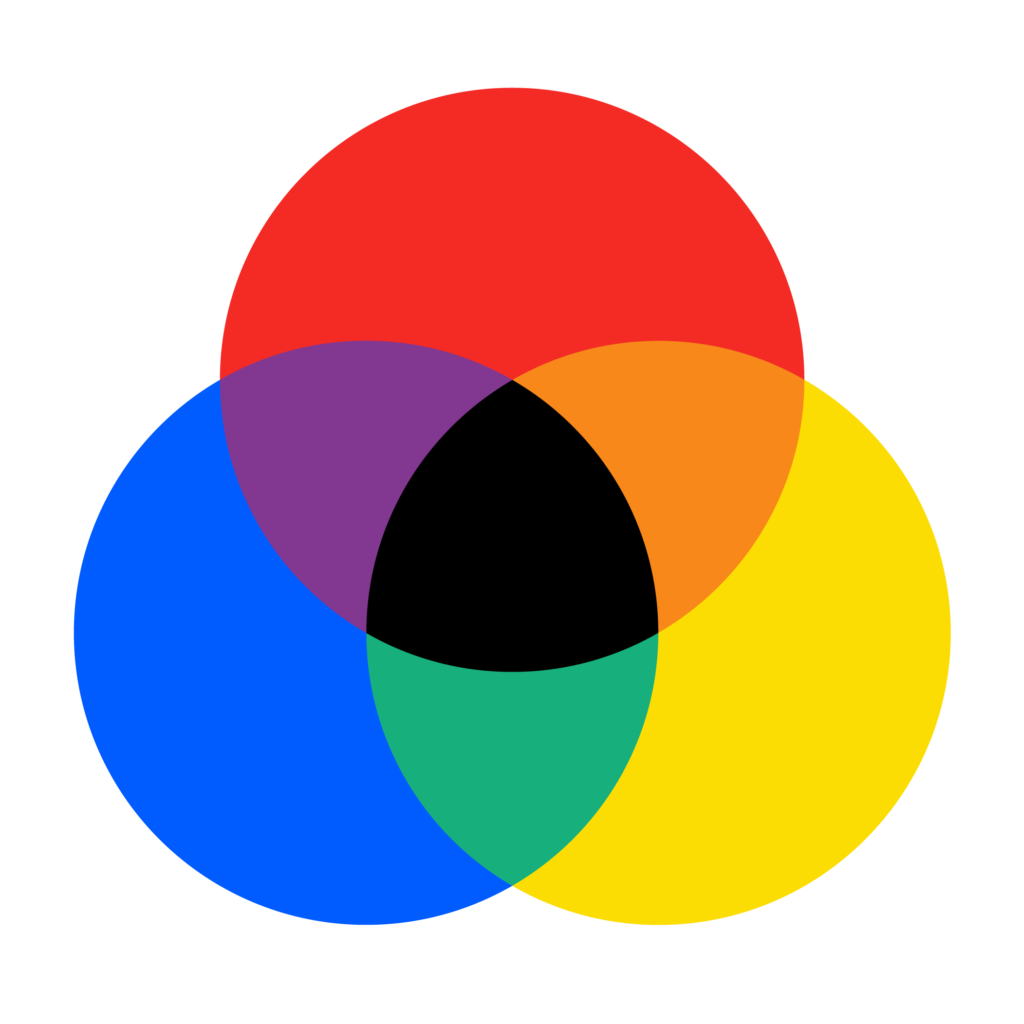 When we mix pigments, they form a new color as well. As we combine more pigments, they subtract the amount of light reflected off the white surface. A pigment mixture is therefore known as a Subtractive color model. The largest gamut we can achieve in a subtractive model uses cyan, magenta, and yellow as primaries, and we call it CMY.