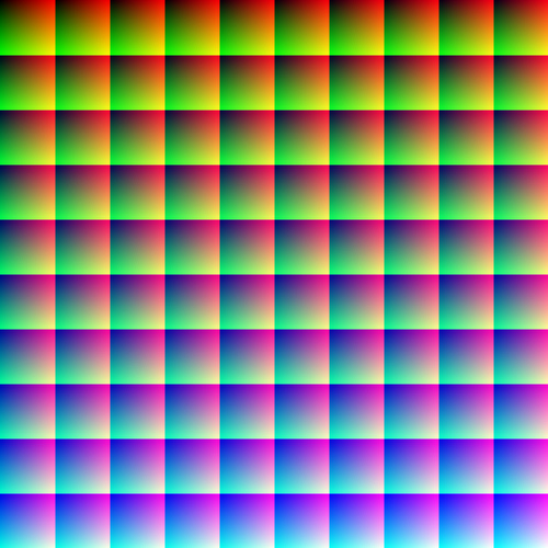 Click on the image above and it will take you to a full resolution of an image that contains one million individual colors. When viewed at full resolution (1000 pixels wide and high), the image contains one million pixels. By changing values incrementally for red, green, and blue, each pixel contains a unique color value. The human eye is sensitive enough to detect about 10 million colors. However, the number of colors possible is theoretically infinite.