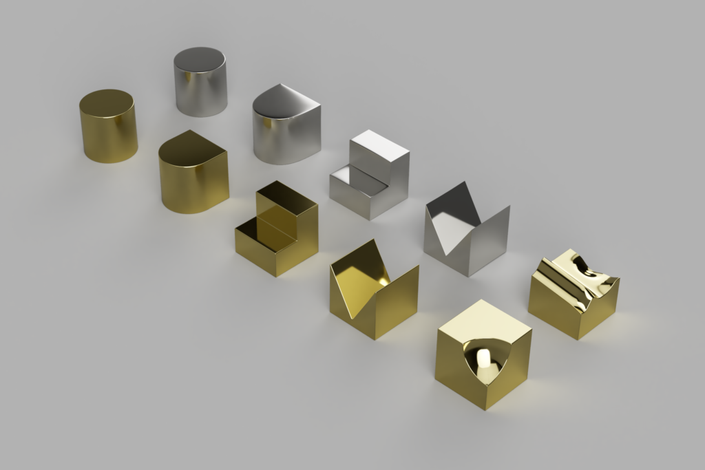 For each of these, we create in Model or Sculpt as appropriate, with a few containing solutions in both. Model solutions are in gold material, while Sculpt solutions are in silver. The case study can be inspected in a publicly-linked model, seen in the link here and in the embedded model below. Below that, a high-resolution rendering will allow you to observe the outcome in its intended production quality.