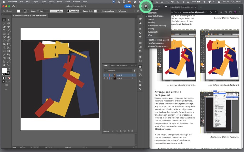 - Use Essentials Classic Workspace! The screen capture below shows where to find it.