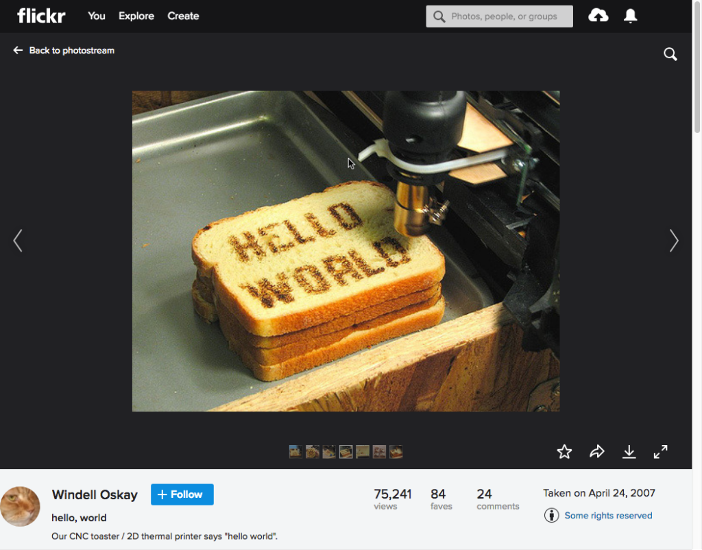 Hello World CNC toaster, from Wendell Oskay