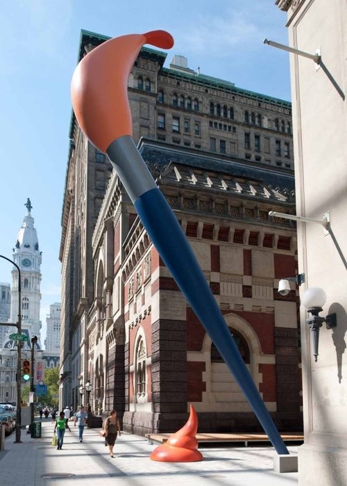 Making an ordinarily very tiny object very large, or a big item small, creates surreal states. Claes Oldenburg and Coosje van Bruggen play with the edge between Pop Art and Surrealism with such works as Clothespin, Button, and Paint Torch, all found in Philadelphia.