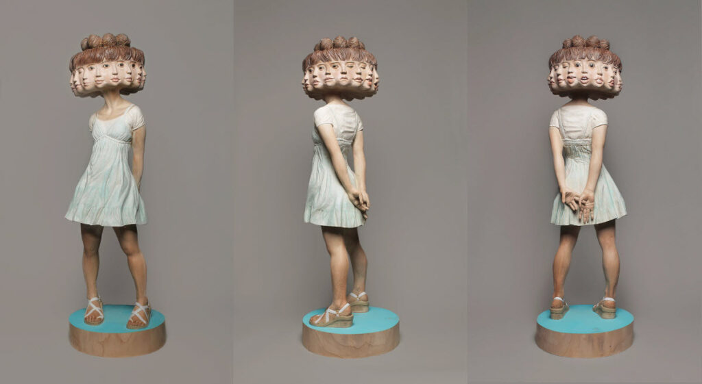 One of the warping, glitchy figures by Paul Kaptein or Yoshitoshi Kanemaki could be created by grabbing and moving, rotating, scaling, or duplicating mesh vertices, edges, or faces. These images are not models, but rather large-scale wooden sculptures inspired by digital glitching.