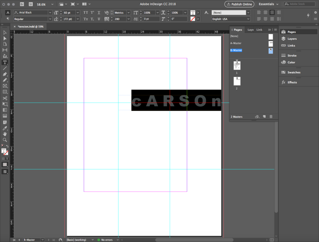 It’s possible to alter this text radically from this original placement of the A-Master text element. Select the type and change it to something that honors Carson or his essay.
