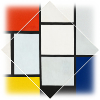 Mondrian thought of his paintings as describing a fully alternative reality. To allude to the vastness of his world, he thought of his compositions the way photographers do: as cropped fragments. In the catalog accompanying the exhibition Mondrian: The Diamond Compositions, art historian E. A. Carmean, Jr. describes this cropping idea: