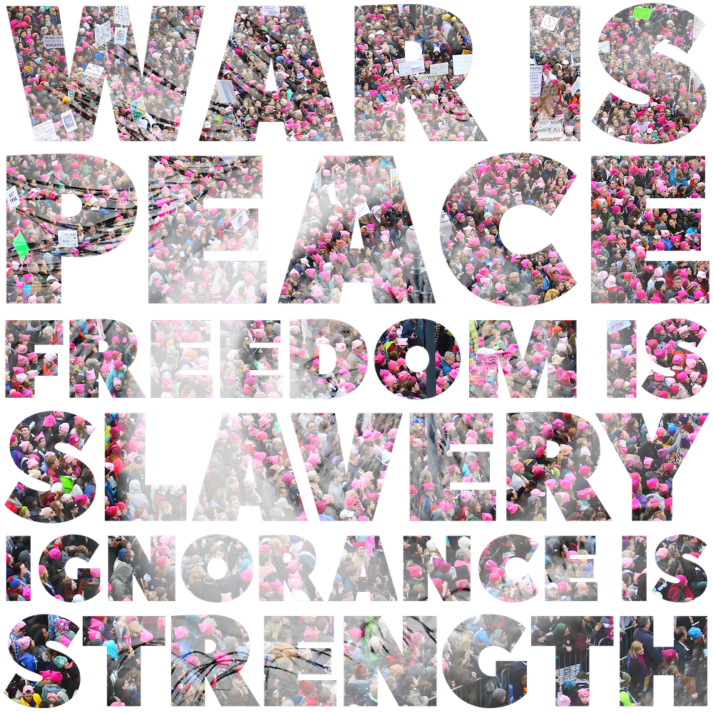 - A text from 1984, the famous dystopian novel by George Orwell, illustrating his concept of doublethink: War is Peace, Freedom is Slavery, Ignorance is Strength.