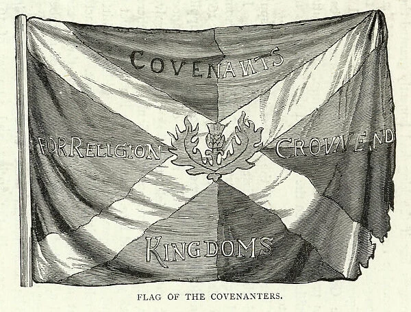 The Covenanters were Presbyterians sworn to defend their religion, part of a Protestant effort to seize power in Scotland against the English. The flag was a mashup of the Scottish Saltire flag with the thistle and text: Covenants for Religion Crowne and Kingdoms